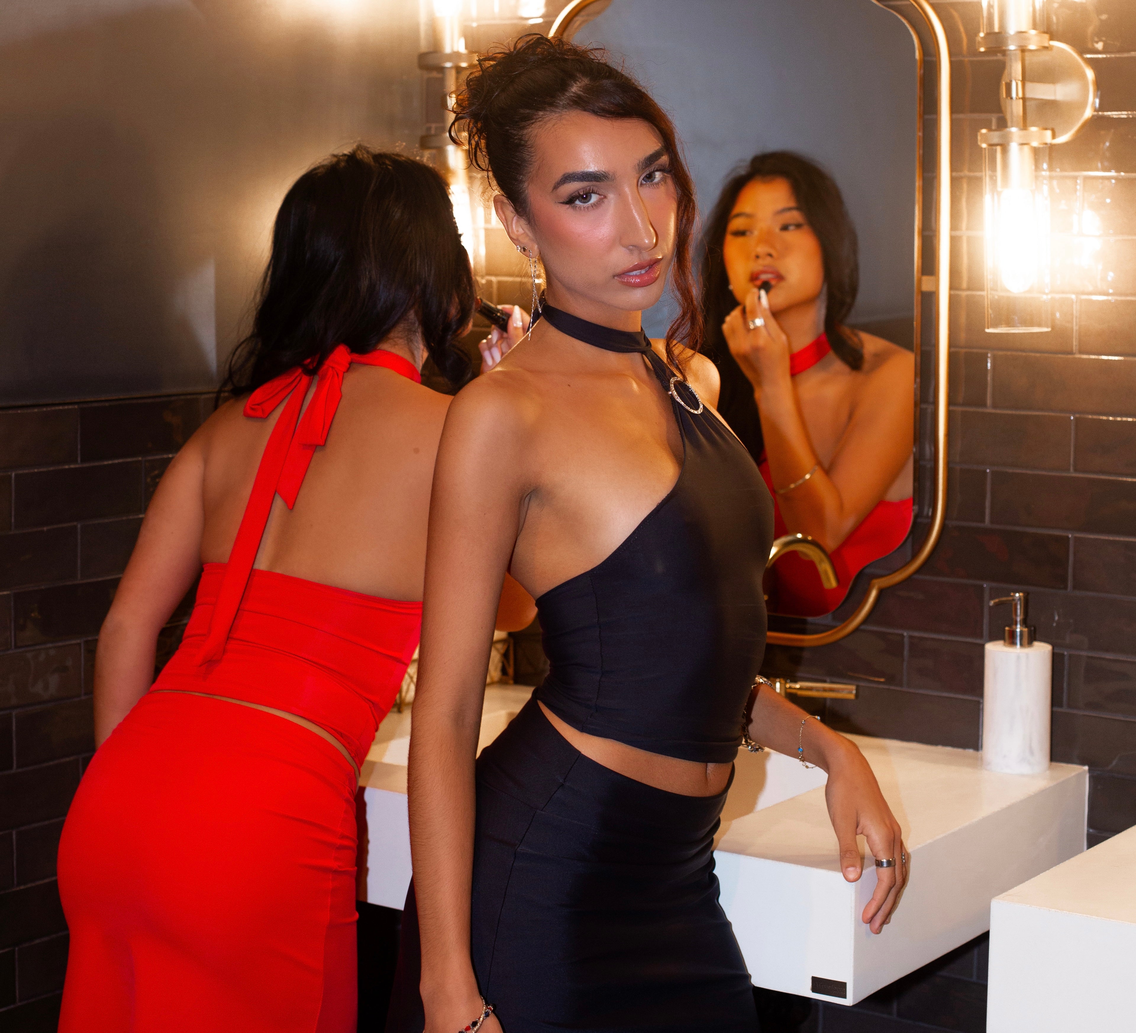 RAQUEL MIDI SKIRT IN BARBADOS RED